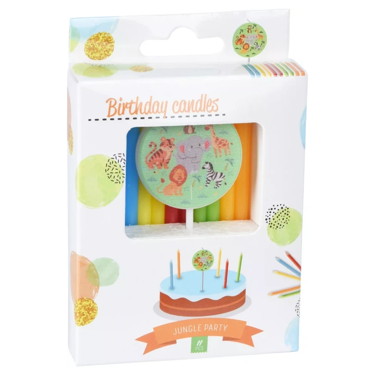 Wild Safari Cake Decorations: Decorate your cake with this set of animal and thin candles; the detachable candle holders ensure stability in any cake, cupcake or dessert Thin Birthday Candles: Add fun and charm to your child birthday cake or dessert, the animal candles will complement your safari party decorations perfectly