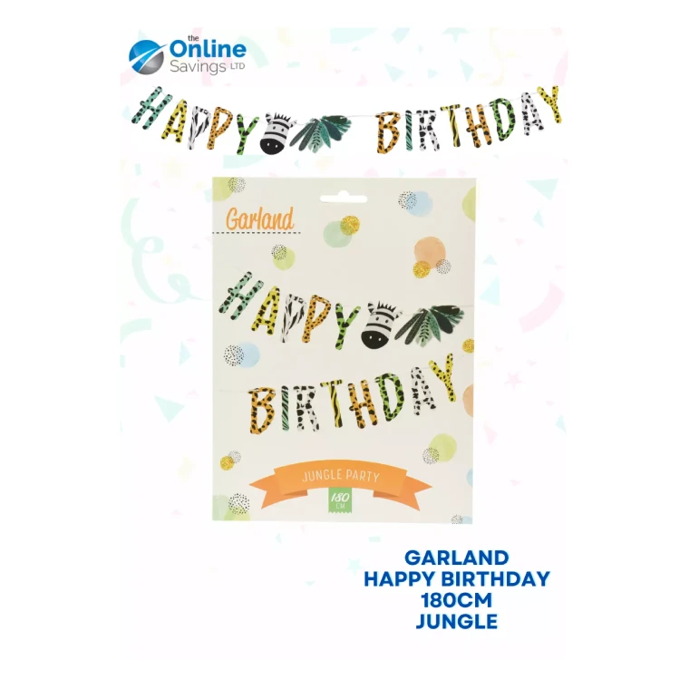 GARLAND HAPPY BIRTHDAY JUNGLE THEME CHILDREN PARTY BANNER DECOERATION 180 CM