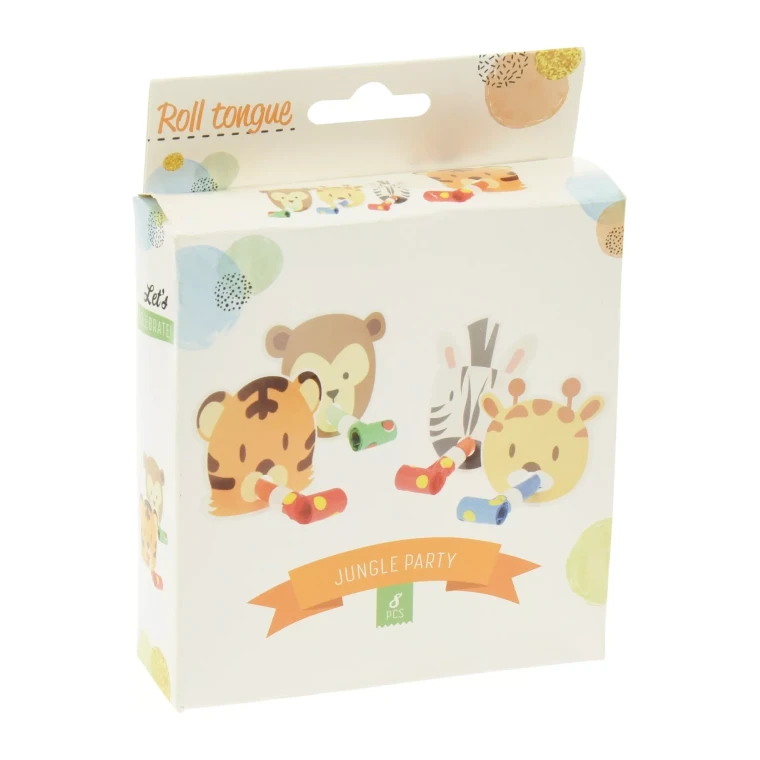 GIFT ROLL TONGUE JUNGLE ANIMALS SET OF 8PCS CHILDREN’S TOY WHISTLE- SET OF 8PCS