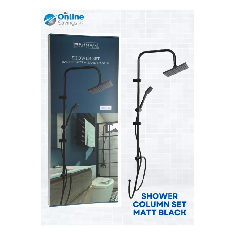 MODERN BATHROOM RAIN SHOWER COLUMN SET MATT BLACK STAINLESS STEEL SHOWER 2-IN-1